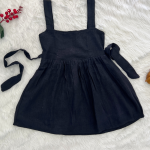 Girls Cotton Linen Skater Black Color Dress